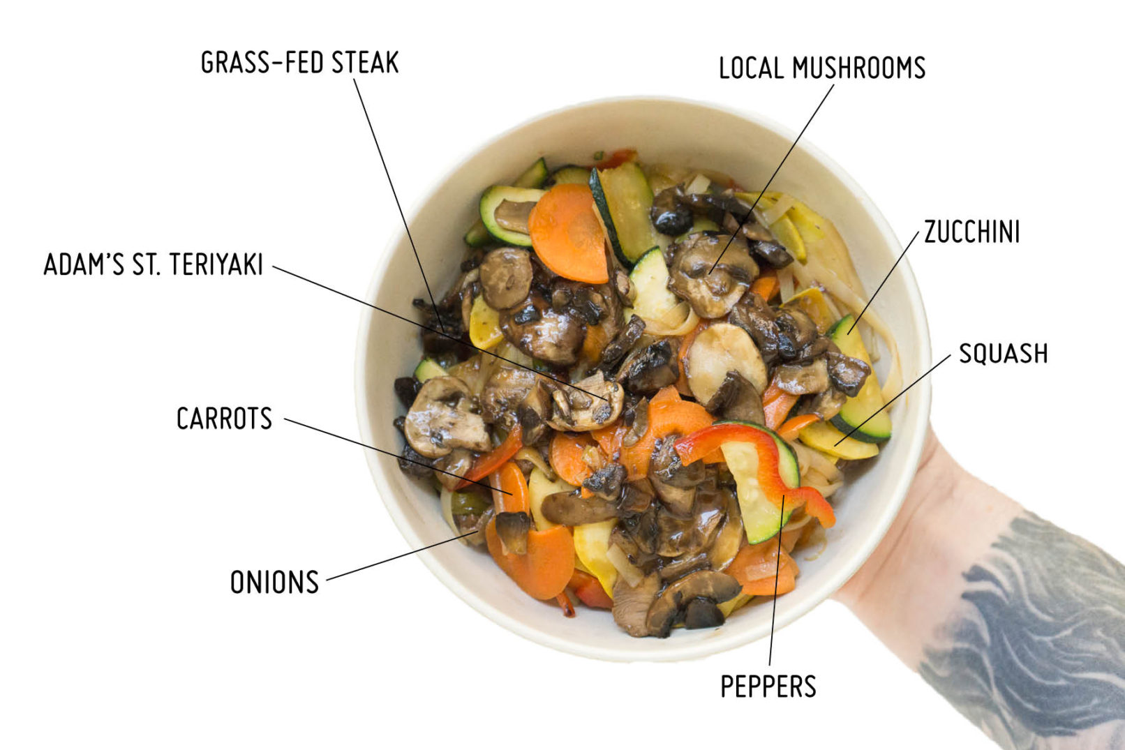 More like Sweet Oh Mommy! (as listed under our Catering menu) Our dairy-free, gluten-free, homemade Adams Street Teriyaki sauce containing tamari, fresh homemade carrot juice, fresh lemon juice,  garlic, ginger, and more is a great choice for all Chicago families near the Loop and River North areas. Our gluten-free rice noodles are lightly boiled before they hit the woks to steam up the best flavors and give you the best quality stir-fy possible. We’re all about fast-casual deliciousness, so we’ve paired our grass-fed steak with carrots, onions, green peppers, zucchini/squash, and Premium Mushrooms. These premium mushrooms vary throughout the season but often times have Portobello, Crimini, Shiitake. Just like all of our other That Umami flavor is quite unique to this item and will leave your mouth watering. If you’re vegan, simply switch the protein on this signature favorite to ‘tofu’ or ‘extra veggies’. Love the contents of all of the above but missing an extra drizzle of sizzle? We’ve got you (request a ‘medium’, ‘hot’, or ‘extra hot’ to your bowl under special instructions) *Feel free to also contact our team members for any allergy inquiries you may have.